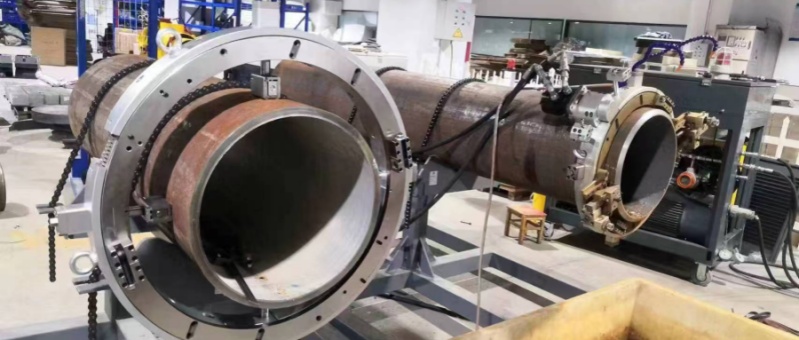 Pipe beveling is a critical preparatory step in welding, ensuring precise fit-up and high-quality, strong joints. For this task, the split frame pipe beveling cutting machine has emerged as a superior cold-cutting solution, especially for pipes and vessels where thermal distortion and material integrity are paramount concerns. Structure and Core Components A split frame pipe beveling cutting machine is a modular, split-frame device designed to clamp onto the outside diameter (OD) of a pipe. Its key structural components include: 1. Split Main Frame/Chain:The defining feature is a heavy-duty rigid frame that wraps around the pipe. It allows the machine to be opened, positioned, and securely locked onto the workpiece without needing to slide over the pipe end. 2. Precision Gear Track: A geared ring integrated into the frame forms the foundation for the cutting carriage's movement, ensuring accurate rotation. 3. Motorized Cutting Carriage: This unit travels around the gear track. It houses the drive motor, feed mechanism, and the tool holder. 4. Drive System:Typically an electric or pneumatic motor that powers both the carriage rotation and the tool feed. 5. Tool Holder & Clamping System:A robust clamp that holds the cutting tool (single-point carbide toolbit or milling cutter) with minimal vibration. Fine-adjustment mechanisms allow for precise setting of the bevel angle (commonly 37.5°) and land (root face). 6. Centralizing System: Adjustable claws or rollers that ensure the machine is centered on the pipe for a consistent bevel around the entire circumference. Working Principle The operation is a mechanical, cold-cutting process: 1. Mounting: The split frame is opened and placed around the pipe at the desired cutting location, then securely locked. 2. Centering & Setup: The centralizing system is adjusted to align the machine's axis with the pipe's axis. The cutting tool is set to the specified bevel angle and land thickness. 3.Cutting:The motor is engaged. The carriage rotates smoothly around the stationary pipe. Simultaneously, the feed mechanism advances the cutting tool incrementally with each revolution, performing a precise turning or milling operation. This continues until a complete, clean bevel is machined around the entire pipe.